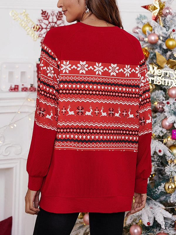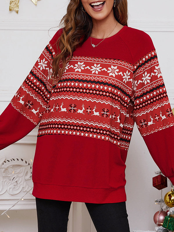 Long Sleeves Loose Animal Printed Flower Print Round-Neck Sweatshirt Tops